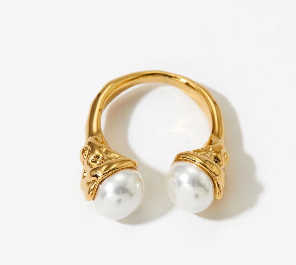 Anillo de material de acero inoxidable con enchape de 16k con perlas artificiales.